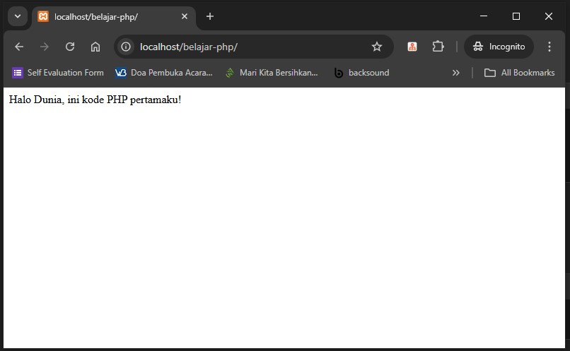 Sekarang buka browser kamu dan ketik: http://localhost/belajar-php